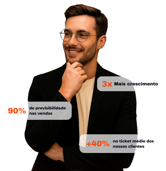 R: Simples. Outras empresas prometem mais leads, mais vendas, mais visibilidade. Nós prometemos algo que ninguém promete: PREVISIBILIDADE. A capacidade de saber exatamente quanto você vai vender nos próximos meses, sem depender de sorte.